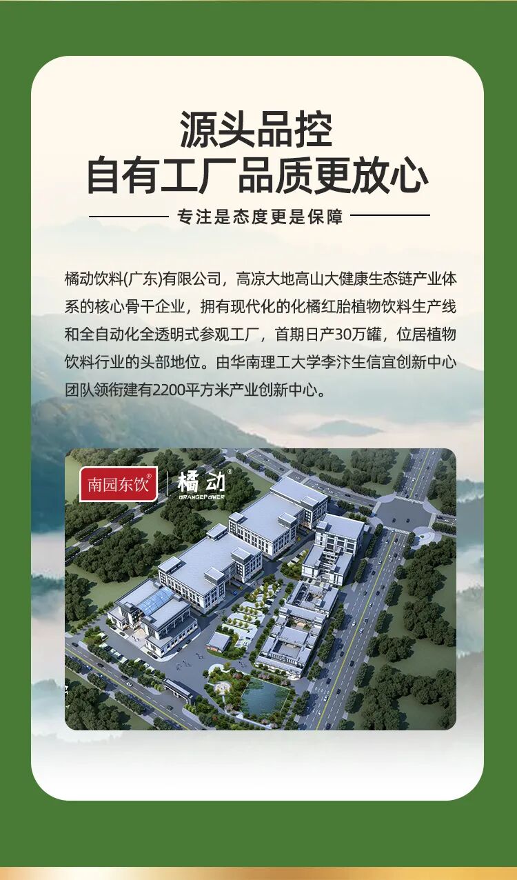 橘动饮品精选国家地理标志产品“化橘红”为核心成分,配以罗汉果、甘草、桂圆等天然草本原料,经科学配比精制而成。口感清爽,润喉护嗓,是家庭常备、出行相伴的理想健康饮品。