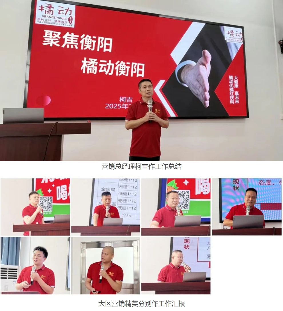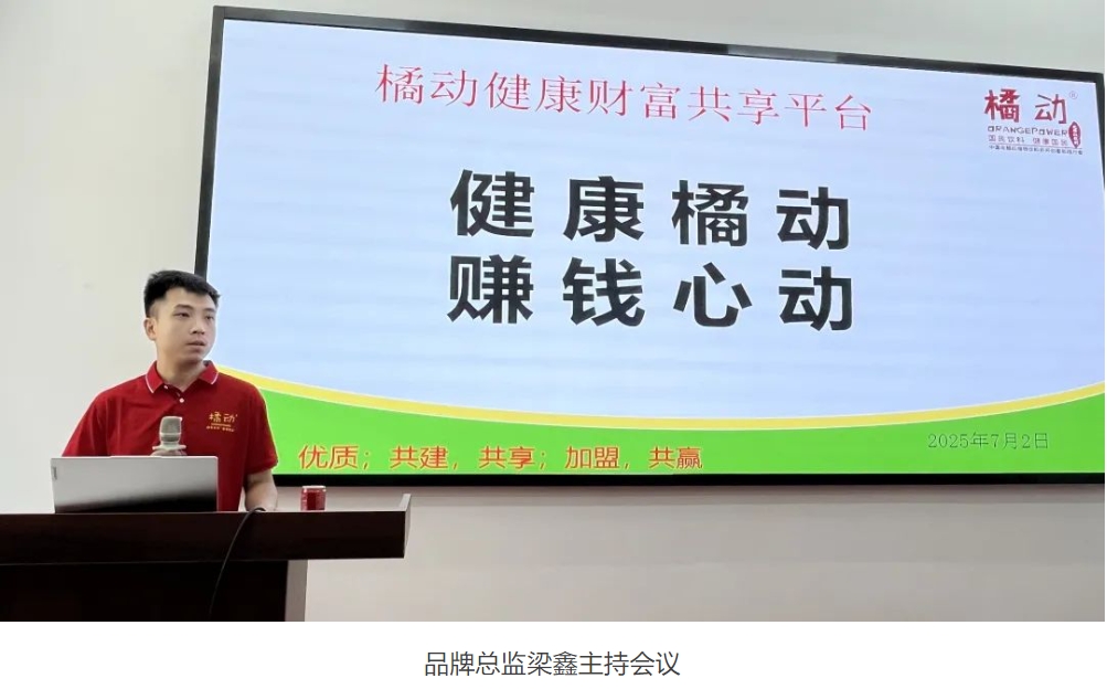 2025年7月1-2日,橘动饮料(广东)有限公司2025年第二季度营销会议暨科普站会员招商培训大会在总部召开。本次会议以 “2025 年第二季度营销会议暨橘动健康财富共享平台招商发展”为主题,聚力健康新赛道,重构营销话橘动,夯力打好全渠道的样板市场,开拓万员万企互联财富共享新体系。湖南省食品流通协会会长张海清老师、各大区总负责人、公司高层及营销管理人员等参加,会议由品牌总监梁鑫主持。